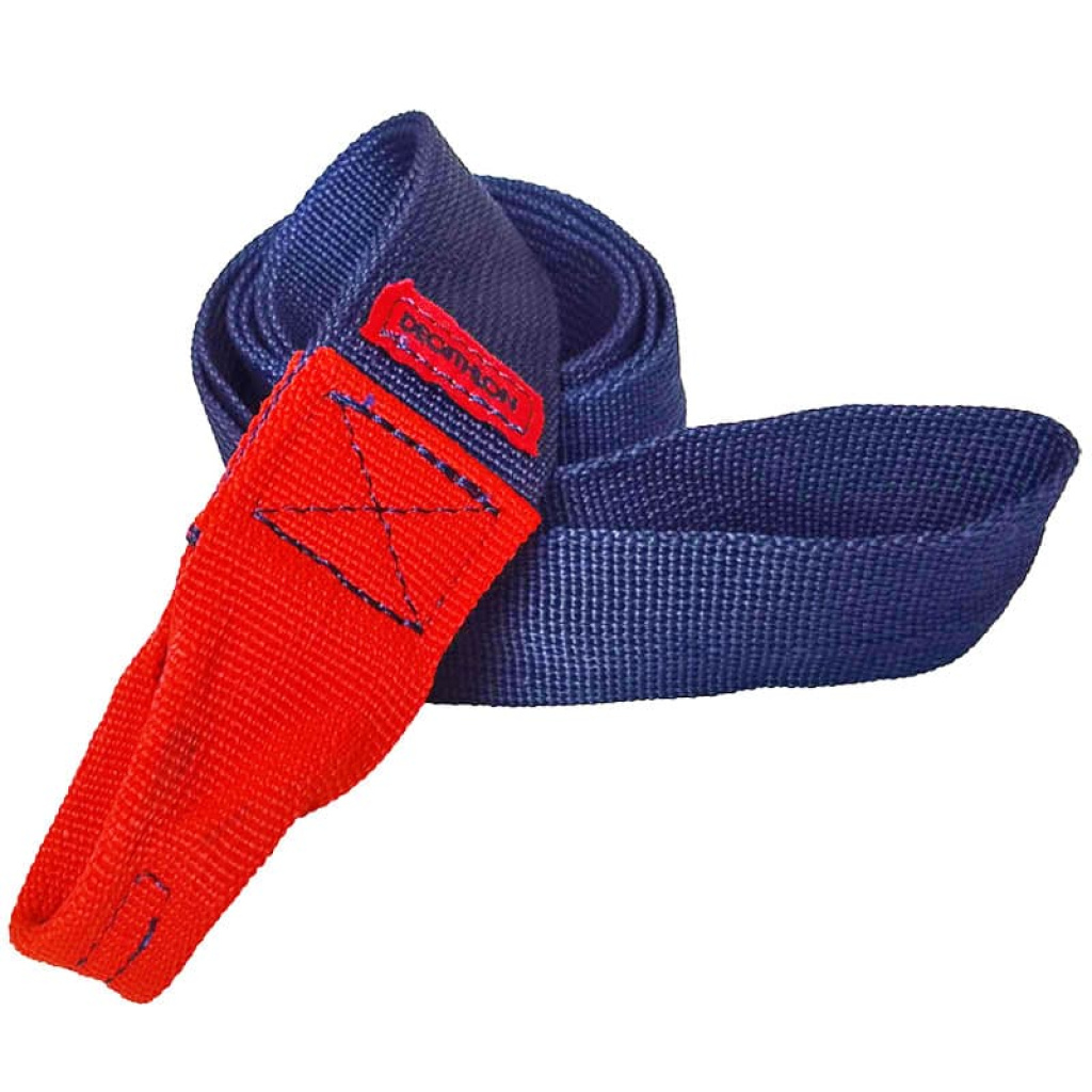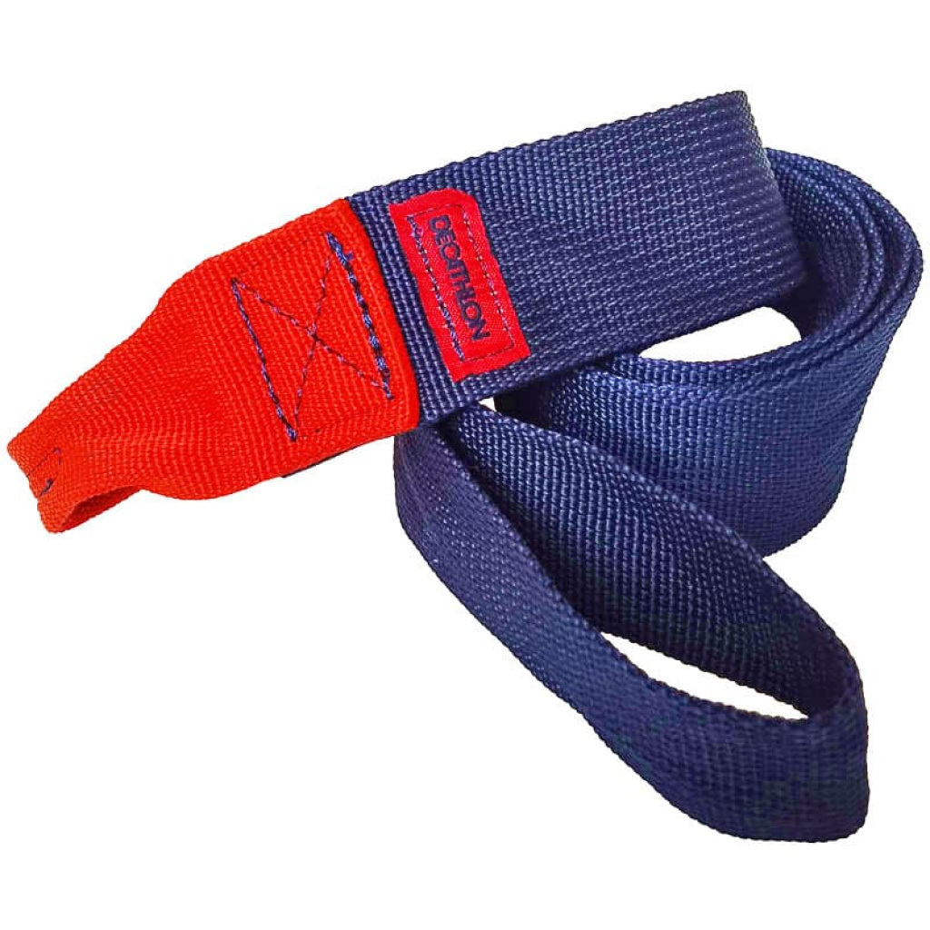 Decathlon Uzatma Kayışı, 86 cm uzunluğu ve dayanıklı naylon/polyester malzeme yapısıyla süspansiyon sistemlerini sabitlemeyi kolaylaştırır. Mavi-kırmızı tasarımıyla antrenmanlara şıklık katar.